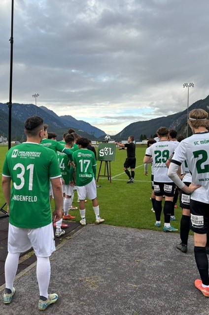 Bei herbstlichen Temperaturen gingen wir bereits in der 5. Spielminute mit 0:1 in Rückstand. Einen Abspielfehler im Mittelfeld nutzten die Gäste aus Münster eiskalt aus und gingen früh in Führung. Nur kurze Zeit später hatte Platter Colin das 1:1 am Fuß, er scheiterte aber am Tormann der Gäste. Wir blieben das ganze Spiel zwar spielbestimmend, erarbeiteten uns aber zu wenig Torchancen, um erfolgreich zu sein.